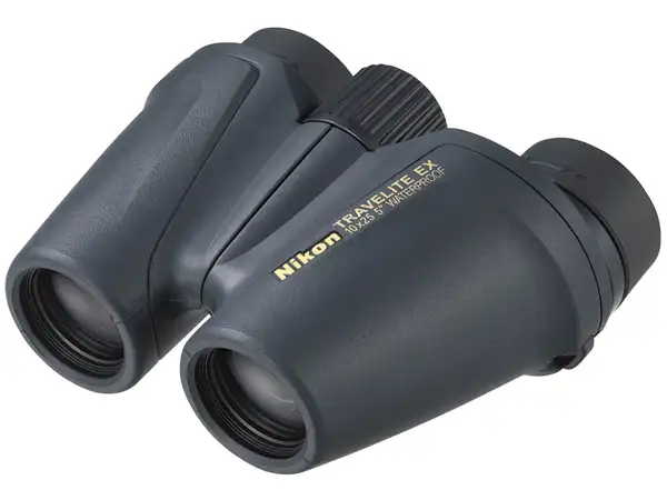 Make your getaway better with the Nikon Travelite EX 10×25 CF Binoculars. These binoculars are made with aspherical eyepiece lenses for reduced image distortion, aluminium die-cast body with rubber armouring for durability and shock resistance, and eco-glass optics that are free from arsenic and lead. They feature multicoated lenses for better transmission and high eyepoint design for easy field viewing. They also have a click-type dioptre adjustment and rubber eyecups for a more comfortable viewing. They offer 10x magnification, an 87m at 1000m linear field of view, a 5-degree real field of view, and a 2.8 close focusing distance with its 25mm objective lens. They also provide a 6.3 relative brightness and a 15.9mm eye relief. These porro prism binoculars weigh 365 grams.